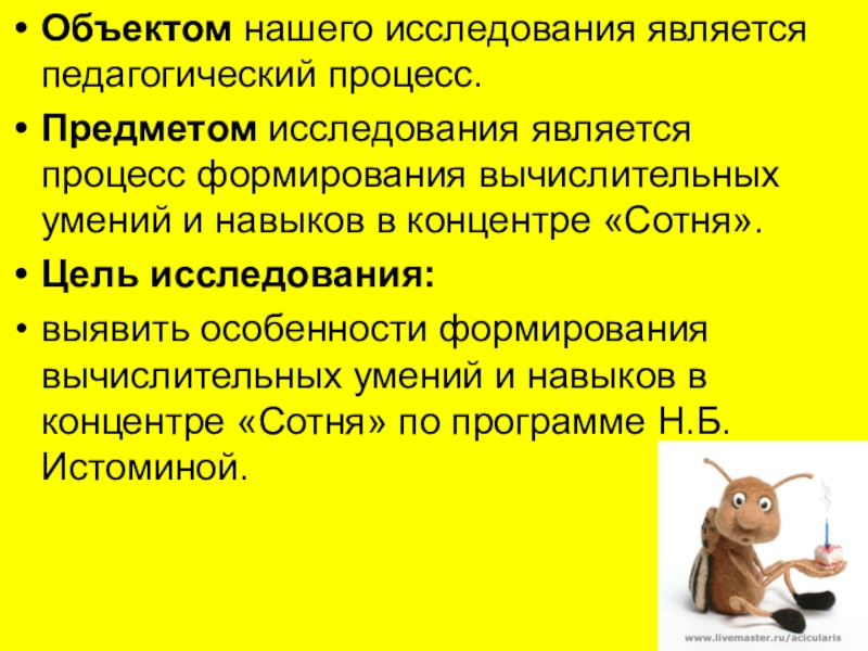 Слайд 5Объектом нашего исследования является педагогический процесс.