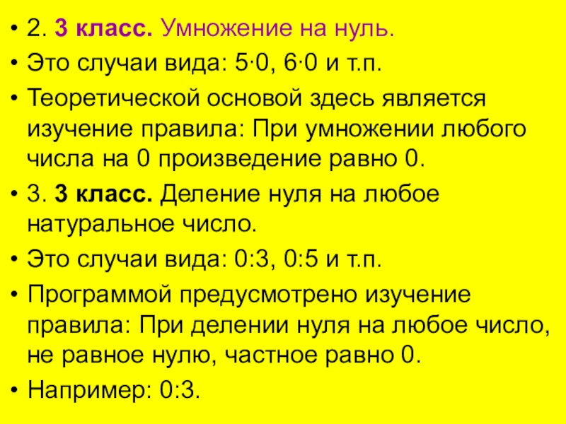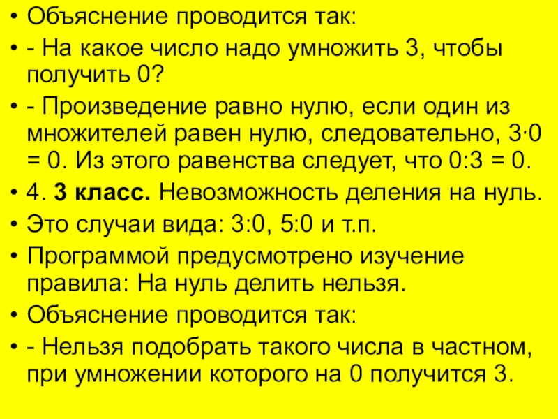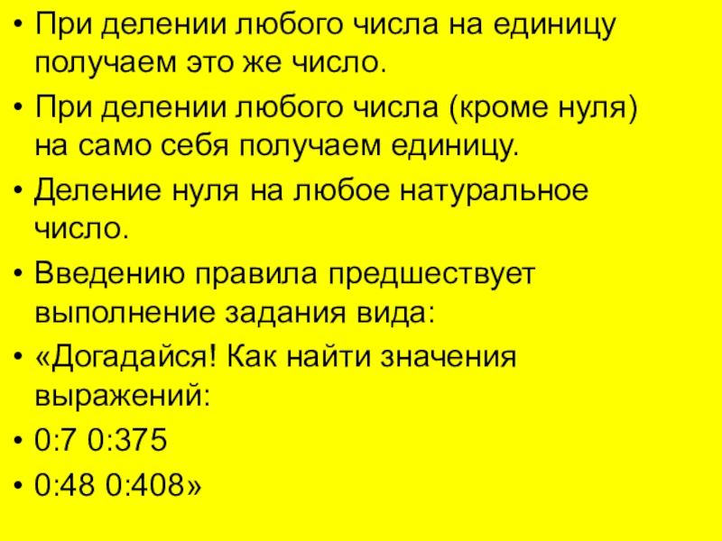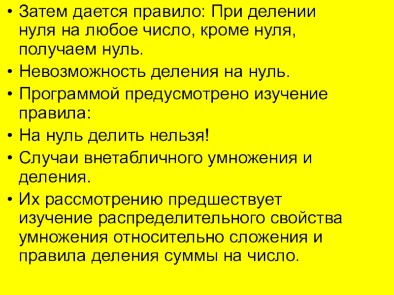 Слайд 80Затем дается правило: При делении нуля на любое число, кроме нуля,
