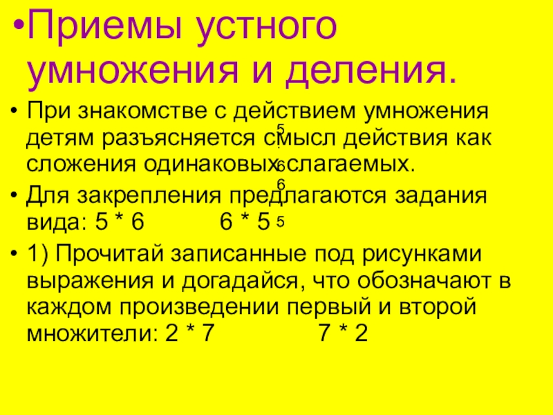 Теоретической основой данного приема на первых порах является определение произведения через сумму одинаковых слагаемых.