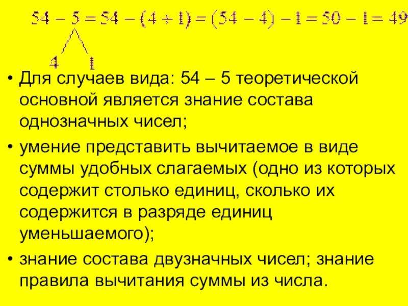 Слайд 15Для случаев вида: 54 – 5 теоретической основной является знание состава