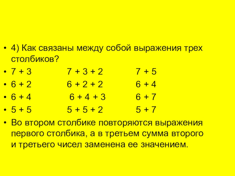 Так, например, подготовительными к изучению письменного сложения и вычитания могут служить задания вида: