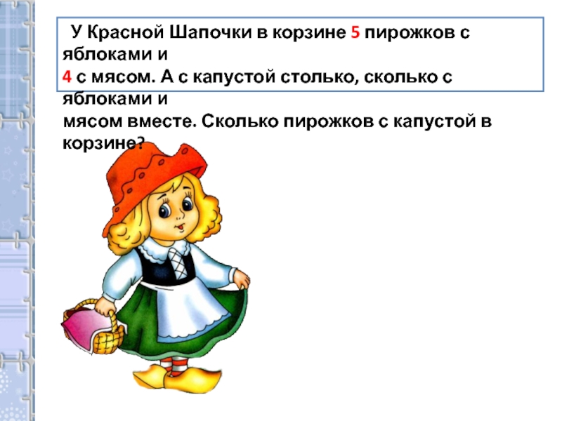 Слайд 14 У Красной Шапочки в корзине 5 пирожков с яблоками и