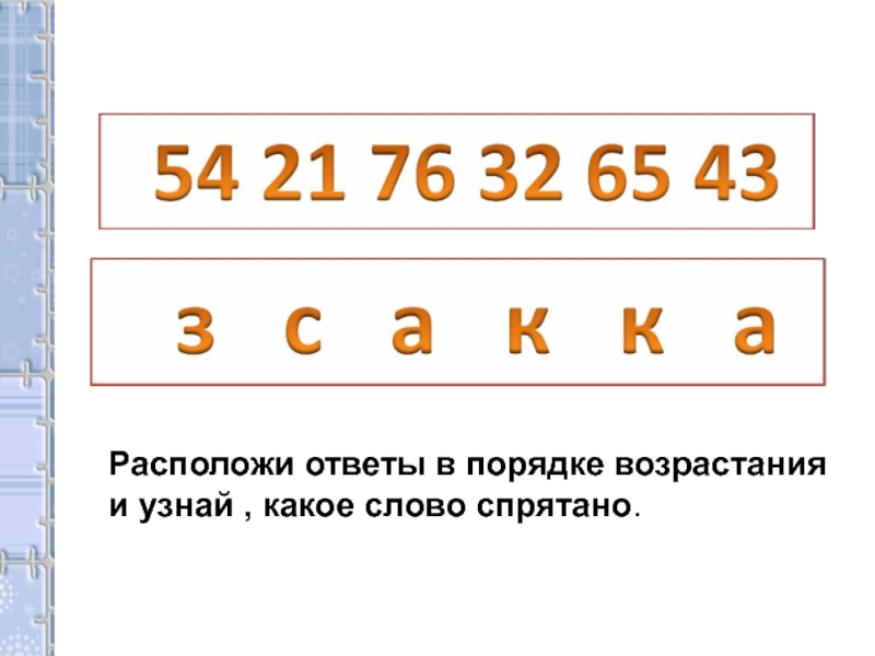 Расположи ответы в порядке возрастанияи узнай , какое слово спрятано.
