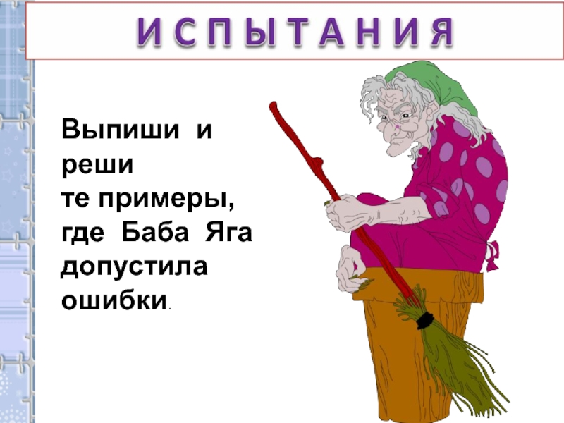 Выпиши и реши те примеры,где Баба Яга допустила ошибки.