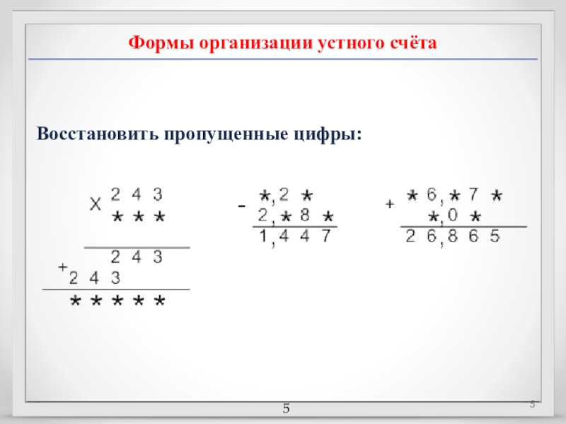 94427 + 1484) – 327; 5 * 8 * 4 * 125; 2,8 * 9.