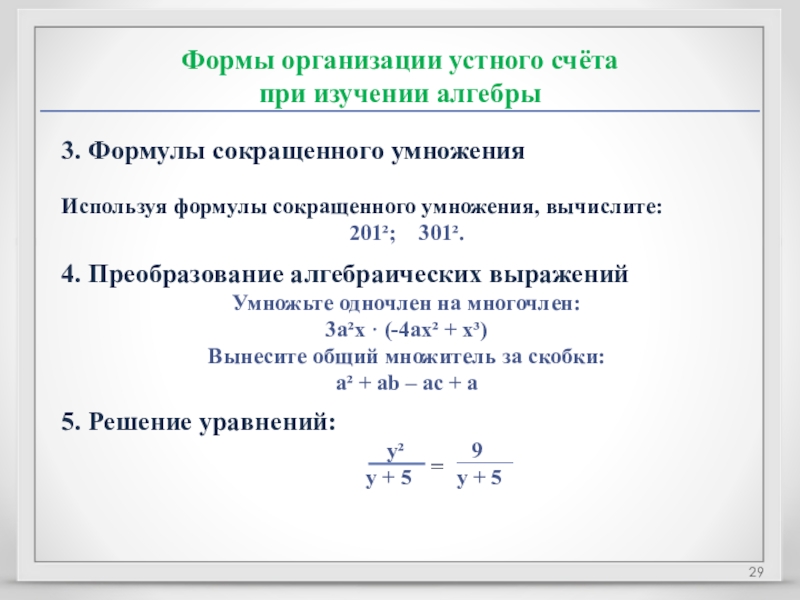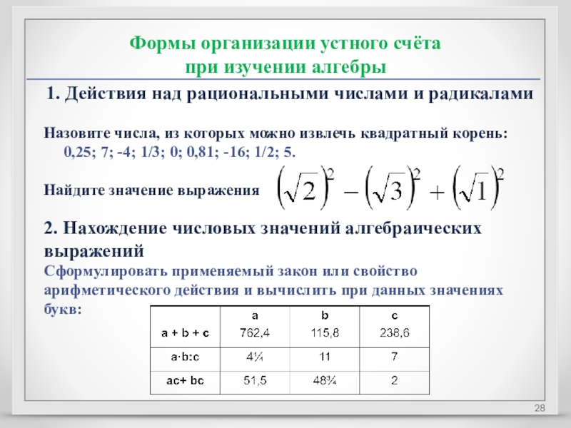 Сформулировать применяемый закон или свойство арифметического действия и вычислить при данных значениях букв: