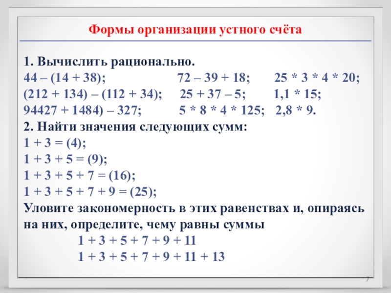 Уловите закономерность в этих равенствах и, опираясь на них, определите, чему равны суммы