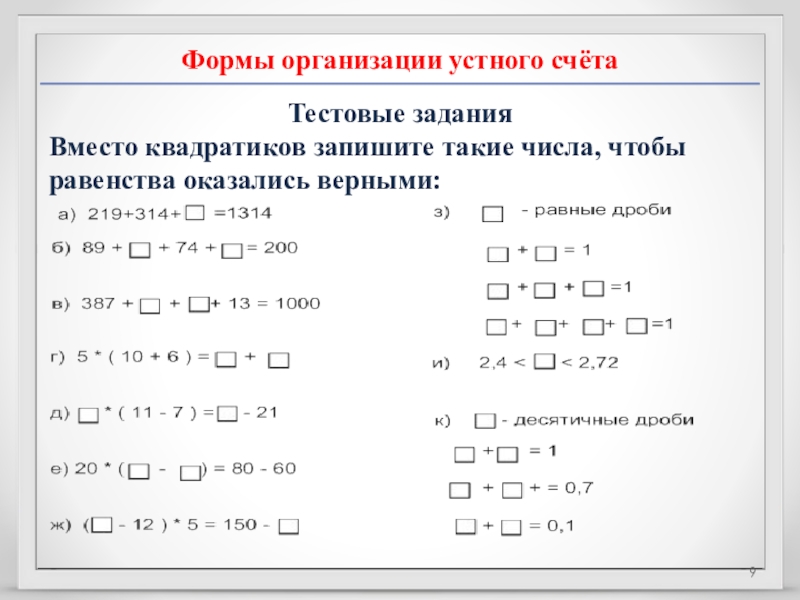 Вместо квадратиков запишите такие числа, чтобы равенства