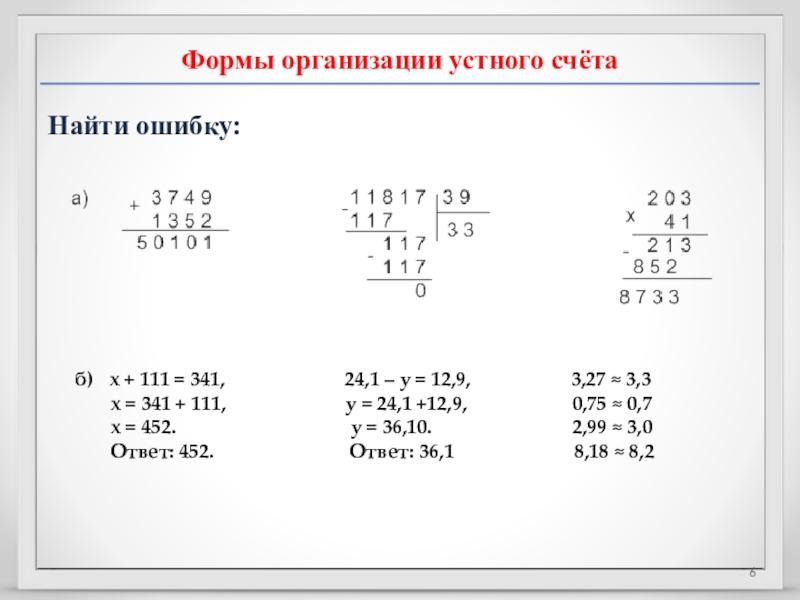 б) х + 111 = 341, 24,1 – у = 12,9, 3,27 ≈ 3,3