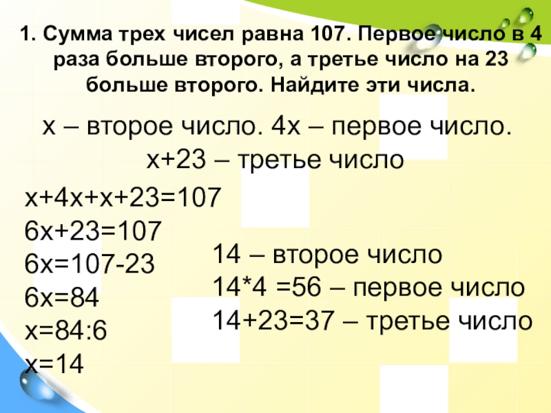 x – 1 число. 1,5x – 2 число.