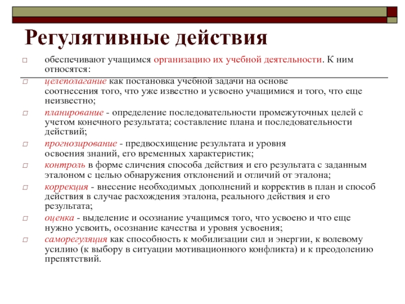 планирование - определение последовательности промежуточных целей с учетом конечного результата; составление плана и последовательности действий;