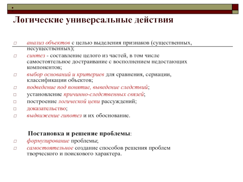 анализ объектов с целью выделения признаков (существенных, несущественных);