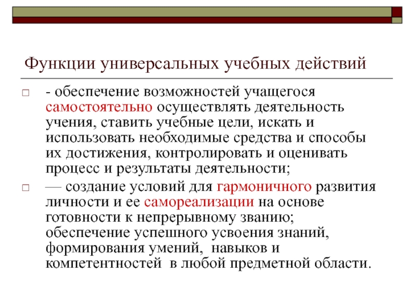 - обеспечение возможностей учащегося самостоятельно осуществлять деятельность учения,