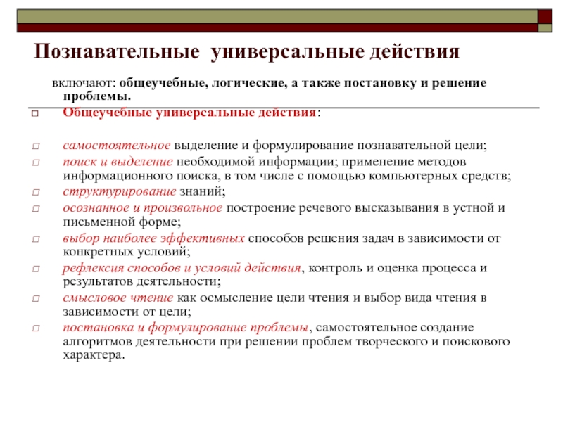 рефлексия способов и условий действия, контроль и оценка процесса и результатов деятельности;