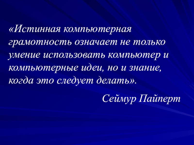 Слайд 2«Истинная компьютерная грамотность означает не только умение использовать компьютер и компьютерные