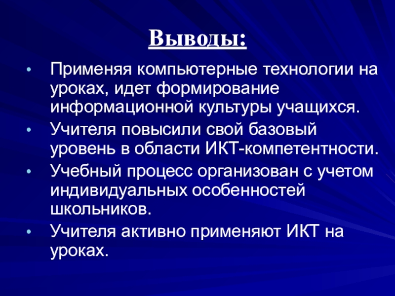 Применяя компьютерные технологии на уроках, идет формирование информационной культуры учащихся.