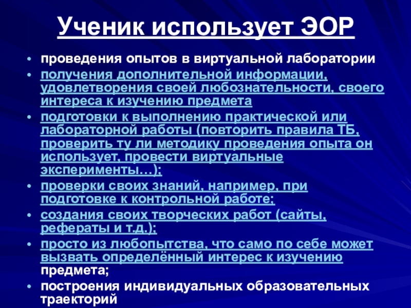 использующиеся в ЭОР
