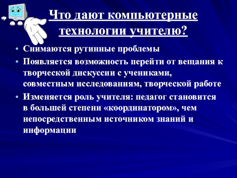 Слайд 20Что дают компьютерные технологии учителю?