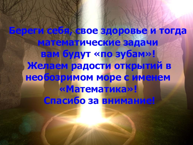 Слайд 34Береги себя, свое здоровье и тогда математические задачи