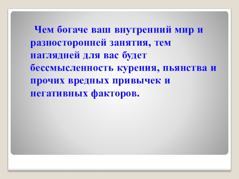 Слайд 33 Чем богаче ваш внутренний мир и разносторонней занятия, тем