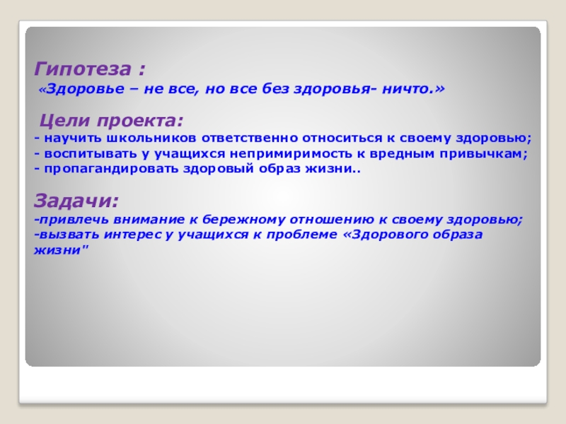 -вызвать интерес у учащихся к проблеме «Здорового образа жизни"