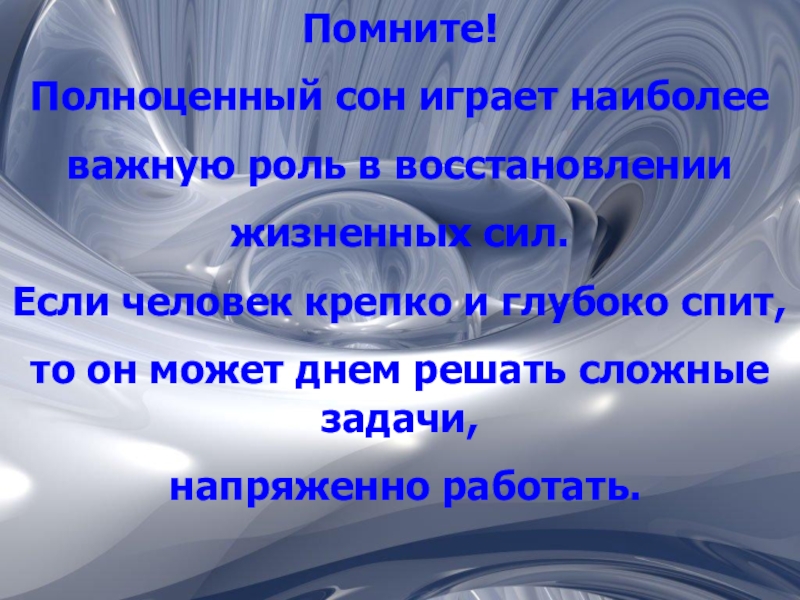 Слайд 20Полноценный сон - важный источник ваших сил