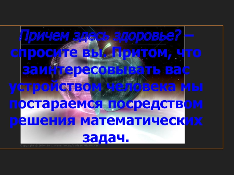 Слайд 6Причем здесь здоровье? –спросите вы. Притом, что заинтересовывать вас устройством человека