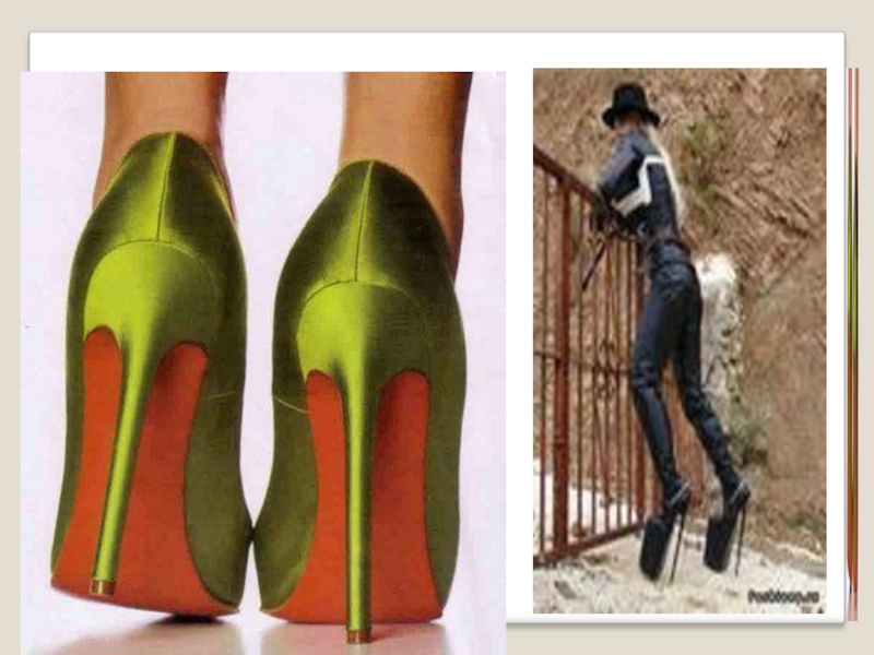и ходят на высоких каблуках, что очень вредно для здоровья. Высокие каблуки перемещают центр тяжести тела вперед, при этом позвоночник искривляется. На высоких каблуках сложнее держать равновесие. Это повышает риск падения, перелома лодыжек и других травм.