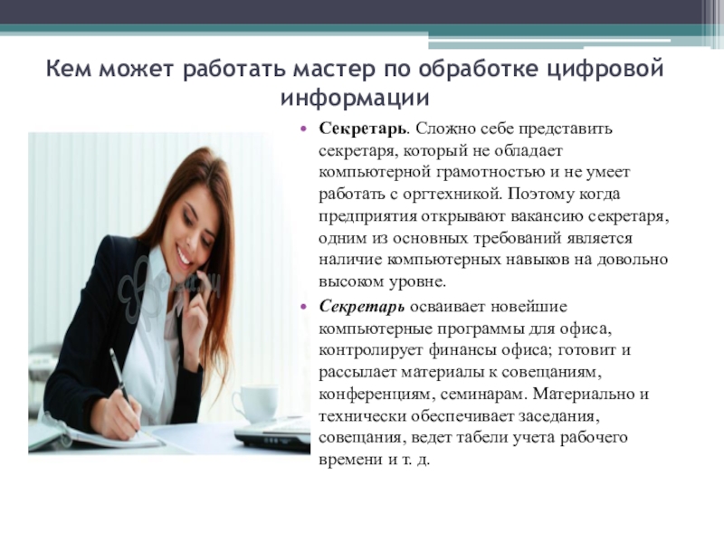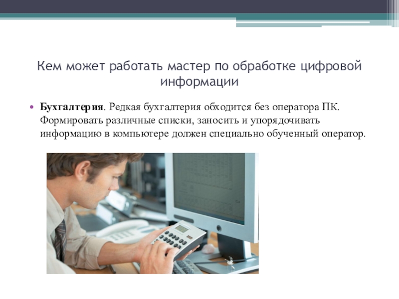 Слайд 18Кем может работать мастер по обработке цифровой информации