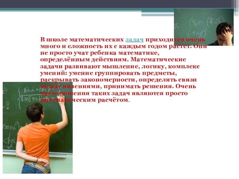Слайд 5В школе математических задач приходится очень много и сложность их с каждым годом