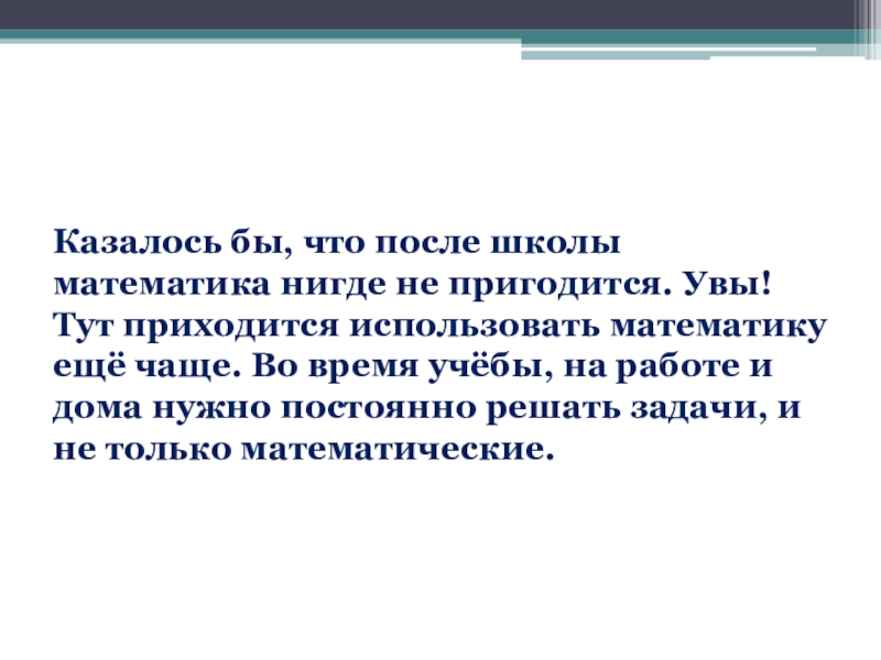 Слайд 6Казалось бы, что после школы математика нигде не пригодится. Увы! Тут