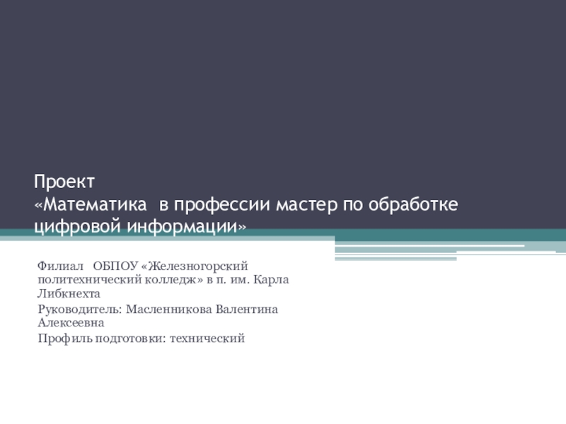«Математика в профессии мастер по обработке цифровой информации»
