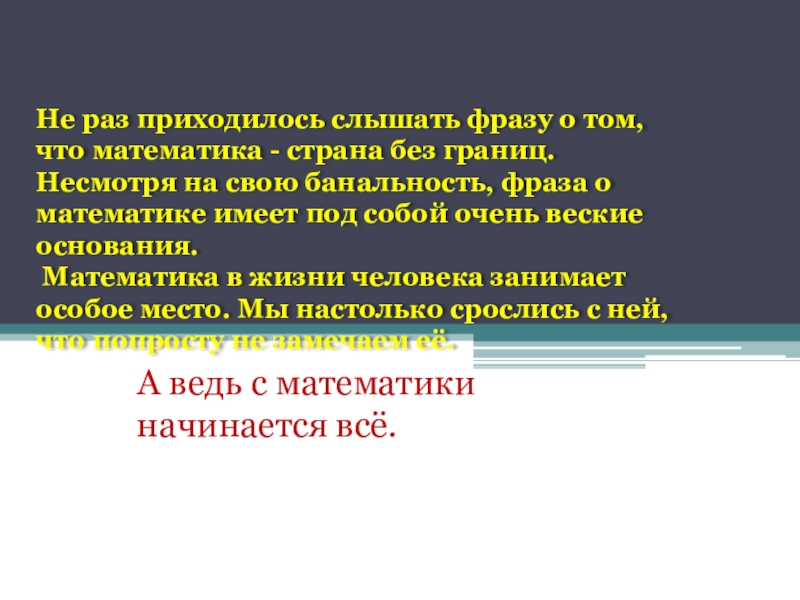 Слайд 3Не раз приходилось слышать фразу о том, что математика - страна