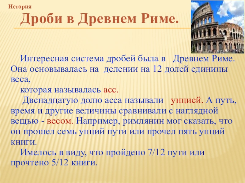 Дроби в Древнем Риме.