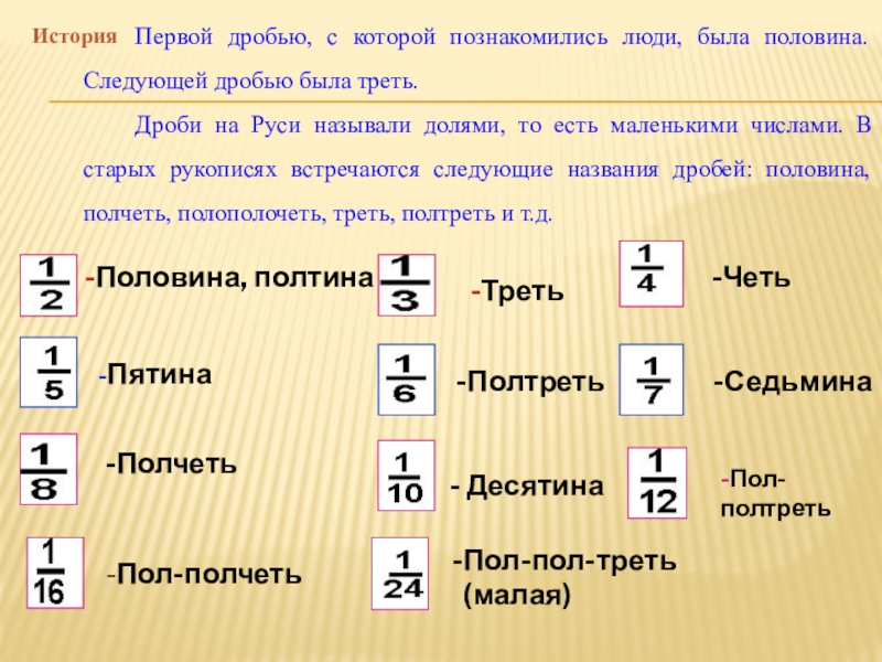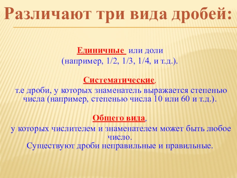 Различают три вида дробей:
