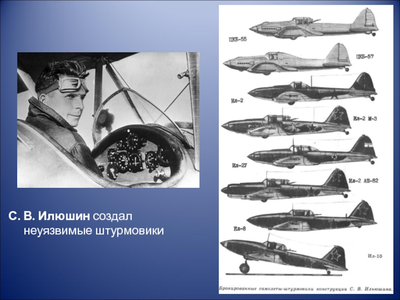 Слайд 11С. В. Илюшин создал неуязвимые штурмовики
