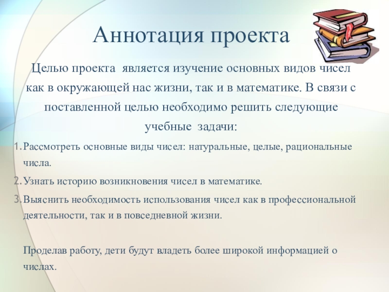 Целью проекта является изучение основных видов чисел как в окружающей