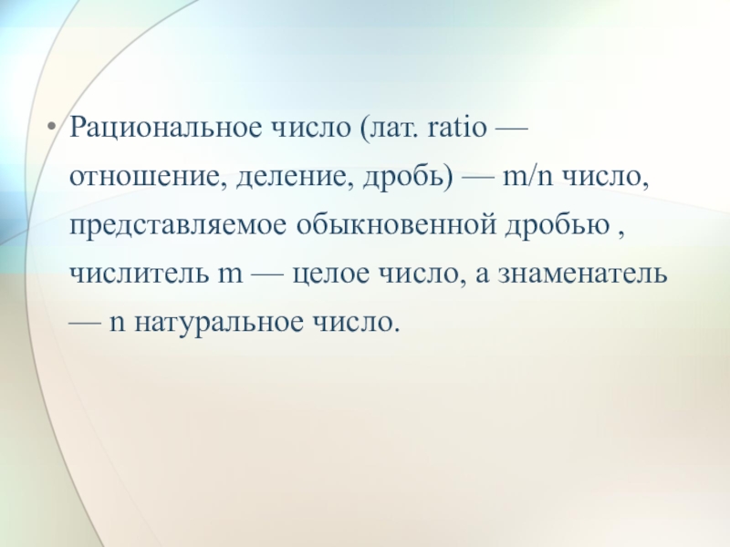 Слайд 17Рациональное число (лат. ratio — отношение, деление, дробь) — m/n число,
