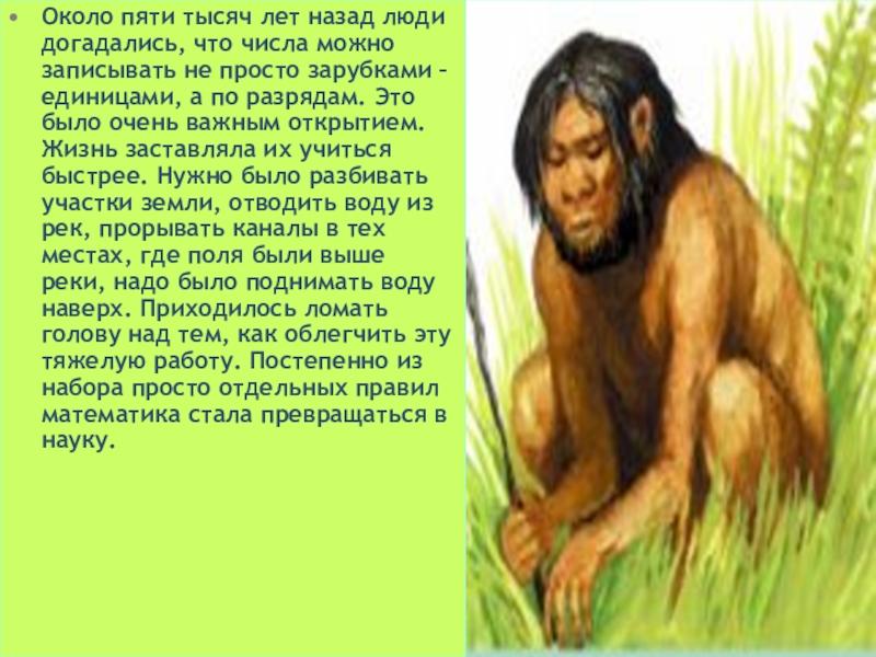 Слайд 6Около пяти тысяч лет назад люди догадались, что числа можно записывать
