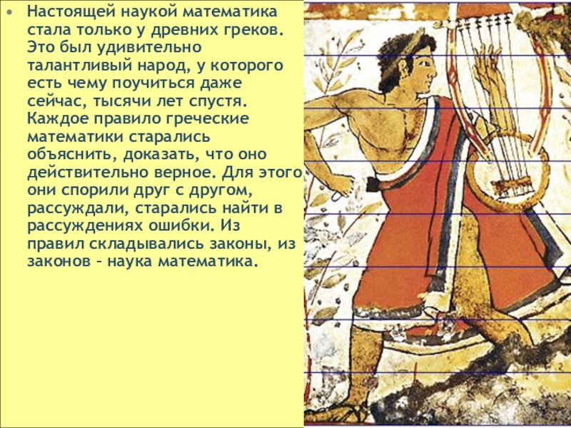 Слайд 7Настоящей наукой математика стала только у древних греков. Это был удивительно