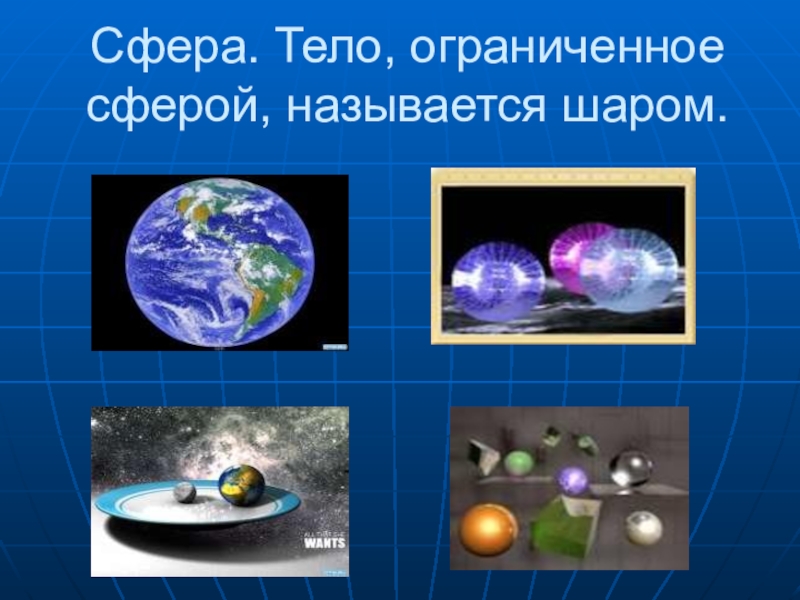 Слайд 8Сфера. Тело, ограниченное сферой, называется шаром.