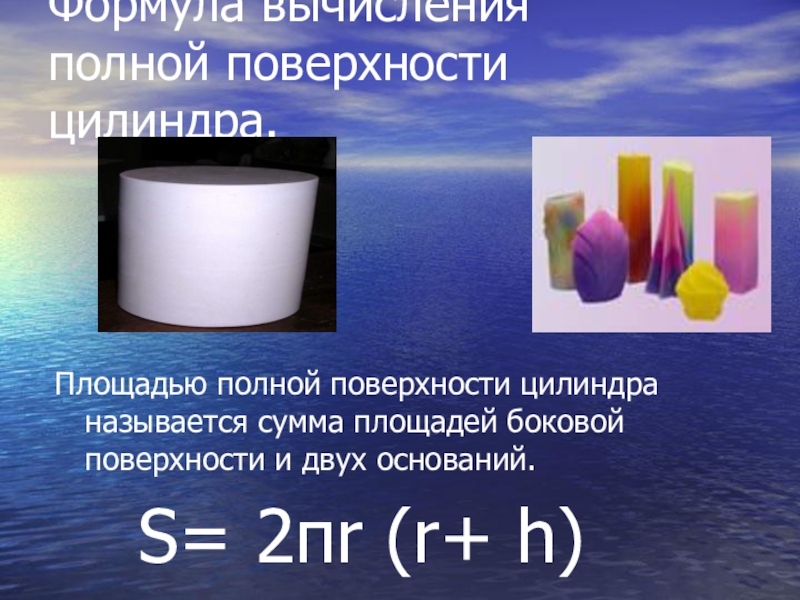 Слайд 9Формула вычисления полной поверхности цилиндра.