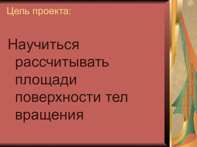 Цель проекта: Научиться рассчитывать площади поверхности тел вращения