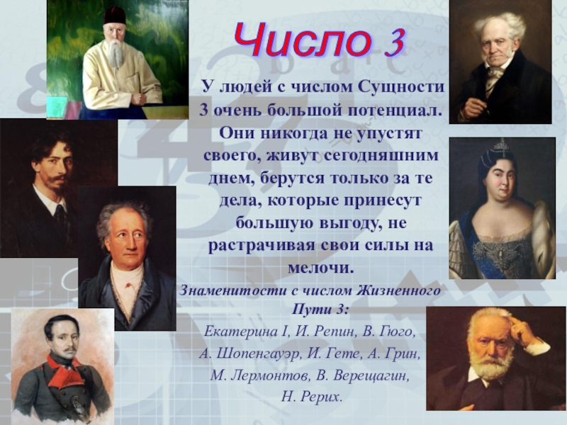 Слайд 10 У людей с числом Сущности 3 очень большой потенциал.