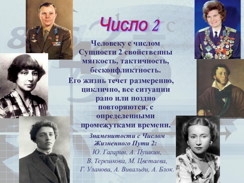 Слайд 9 Человеку с числом Сущности 2 свойственны мягкость, тактичность, бесконфликтность.