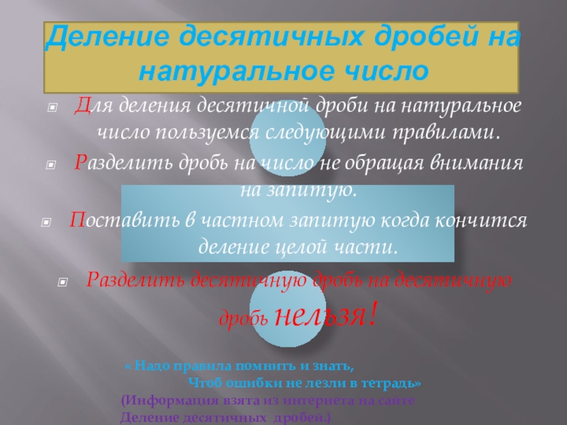 (Информация взята из интернета на сайте Деление десятичных дробей.)
