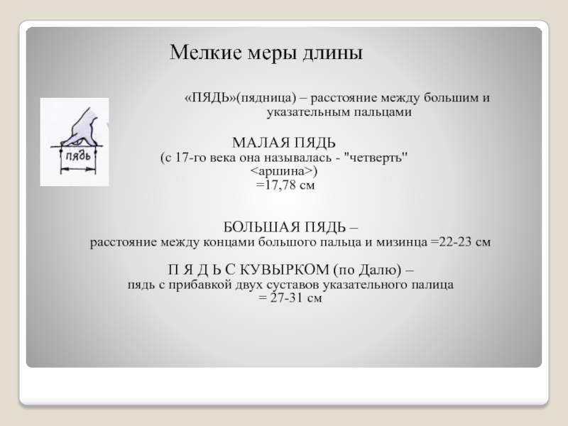«ПЯДЬ»(пядница) – расстояние между большим и