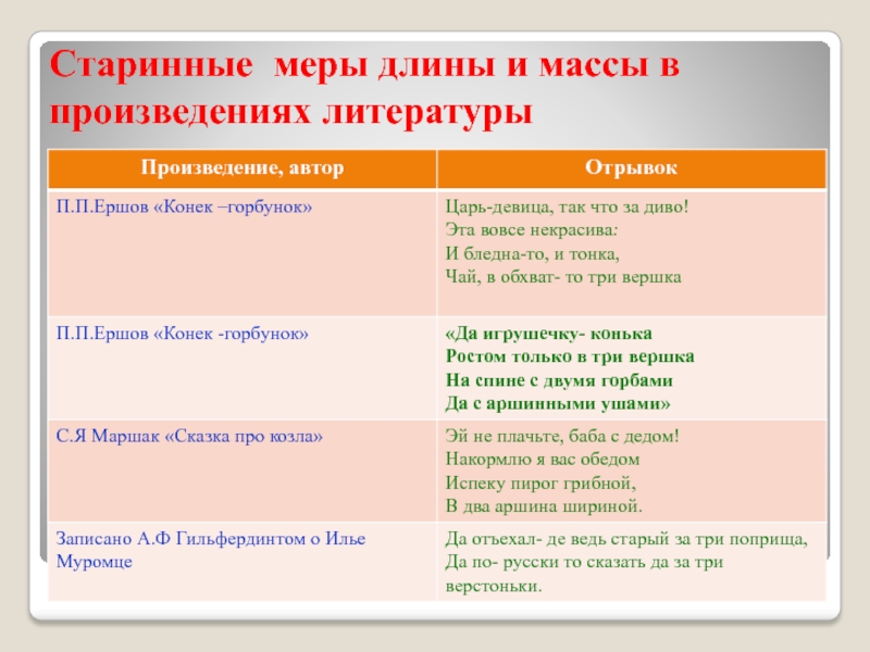 Слайд 22Старинные меры длины и массы в произведениях литературы