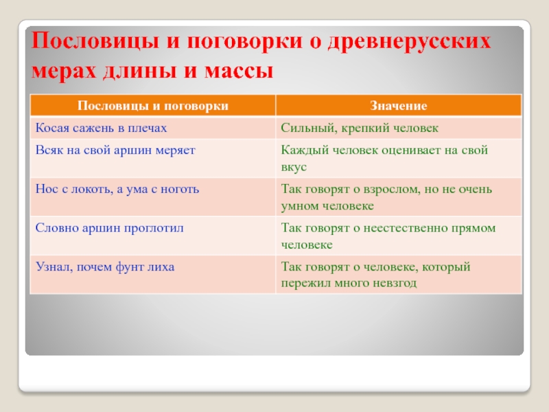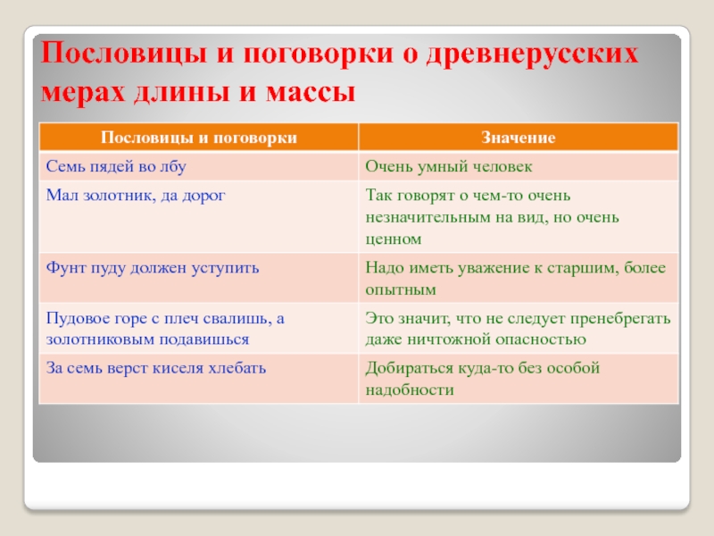 Слайд 20Пословицы и поговорки о древнерусских мерах длины и массы