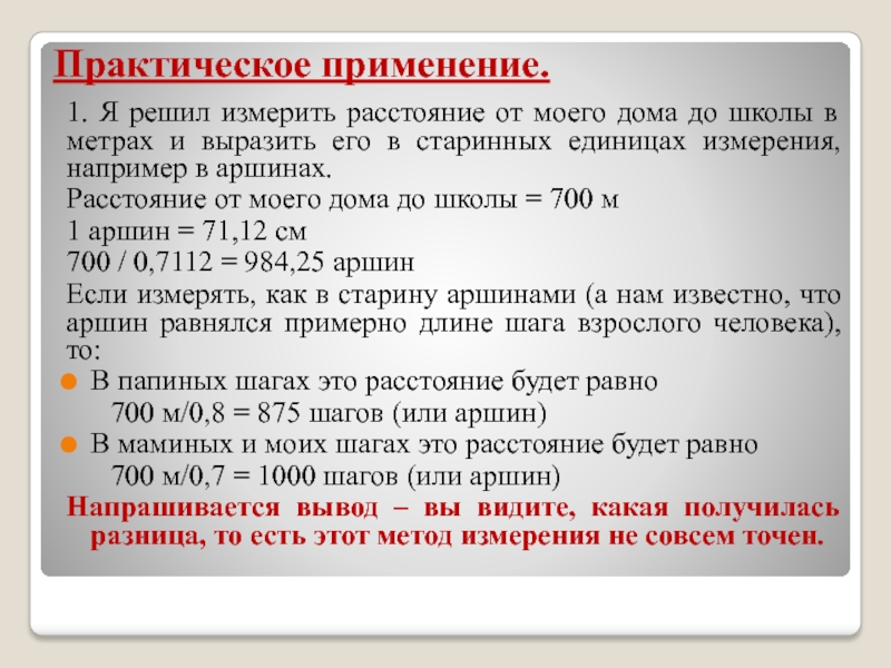 Гипотеза: можно ли использовать старинные меры длины в настоящее время, на сколько они точны и совершенны.